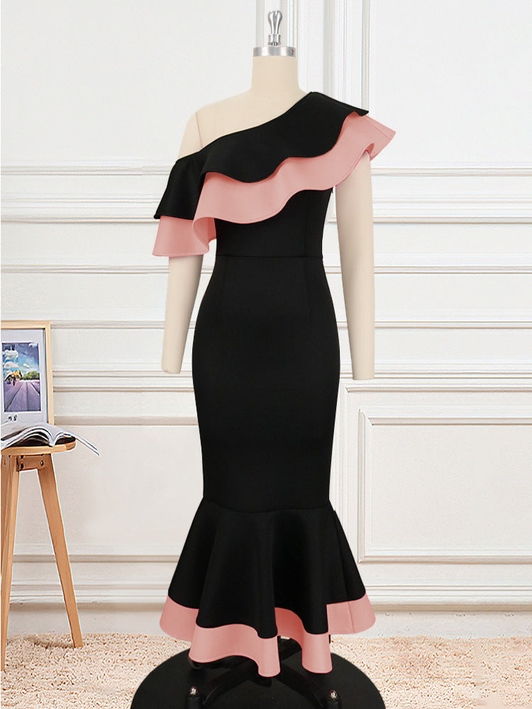 Midi-jurk met schuine schouder en ruches nauwsluitende model