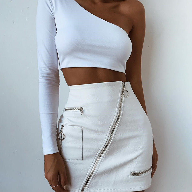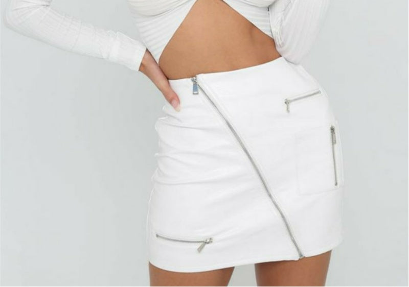 A-lijn leren rok met ritsvakjes