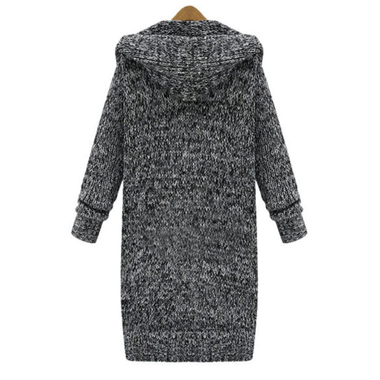 Effen Kleur Gebreid Cardigan Met Capuchon