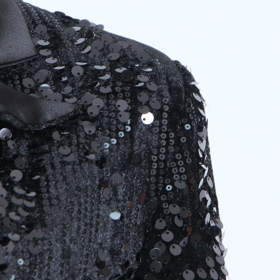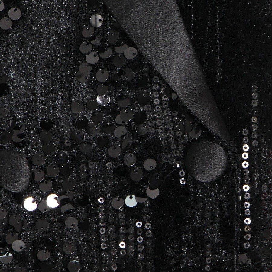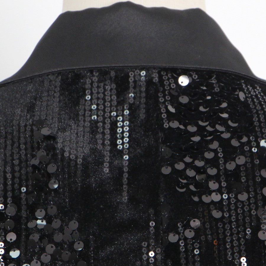 Lange Mouw Pailletten Blazer Met Veren Manchetten
