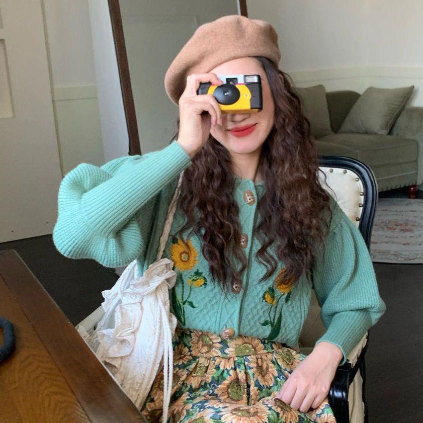 Gebloemde retro jacquard vest en hoge taille midi-rok/ of als set