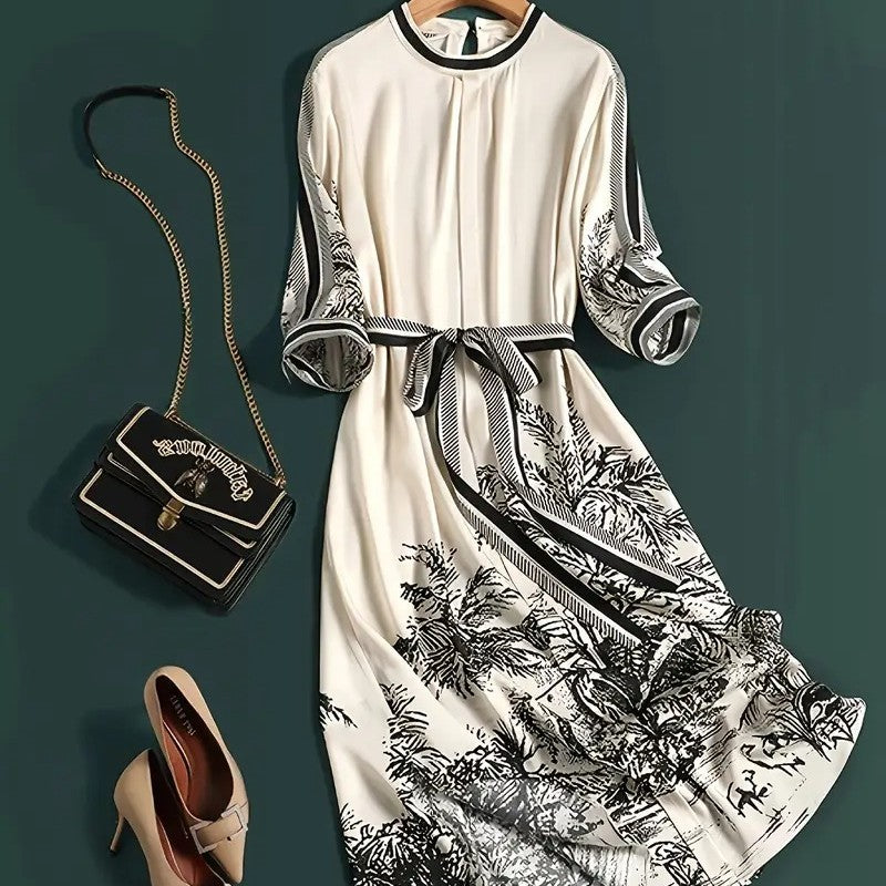 Elegante vintage bloemenjurk A-lijn met tailleband