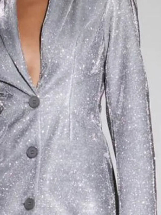 Proveedor:AVIREY.NLPrecio habitual €113,95Precio habitualPrecio unitario / porPrecio de oferta €113,95Damesblazerjurk met revers enkele rij knopen lange mouwen pailletten en lage taille