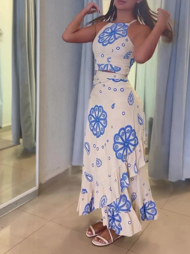 Vakantie Cashew Bloemenprint Sling Ruffle Rok Set