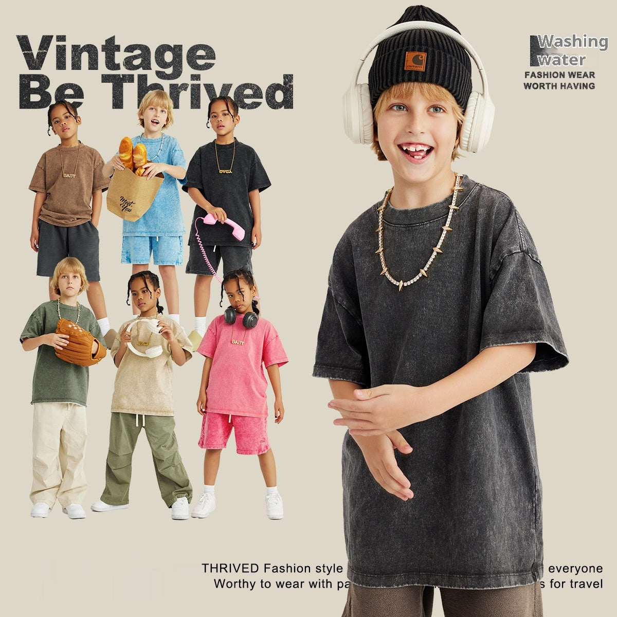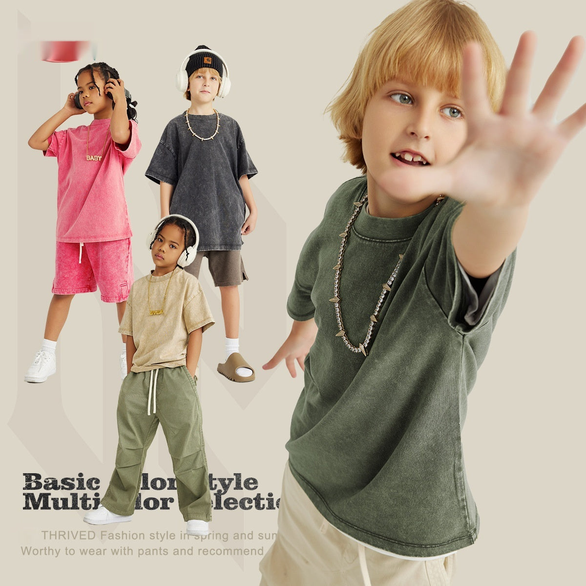 Washed Round Neck Short Sleeve Batik Children's T-shirt