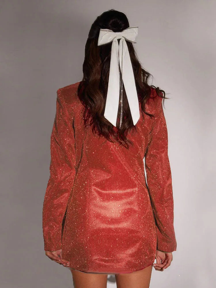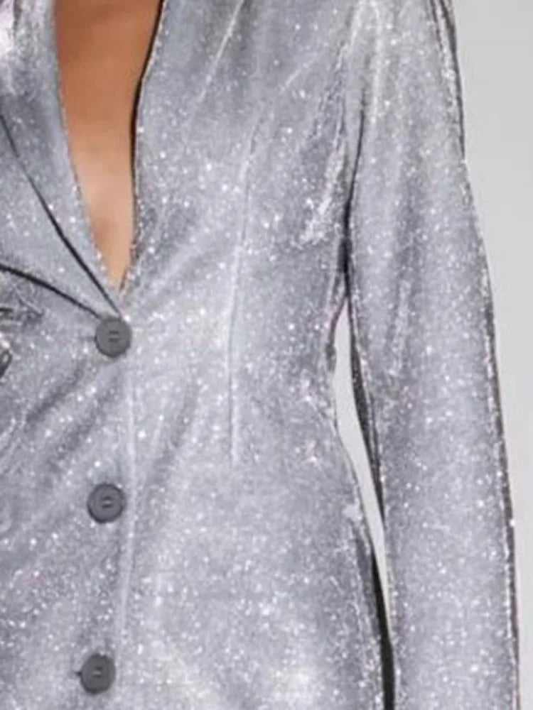 Damesblazerjurk met revers enkele rij knopen lange mouwen pailletten en lage taille
