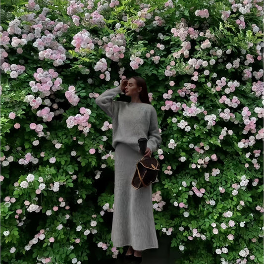 Effen kleur casual losse textuur lange mouwen tweedelig set