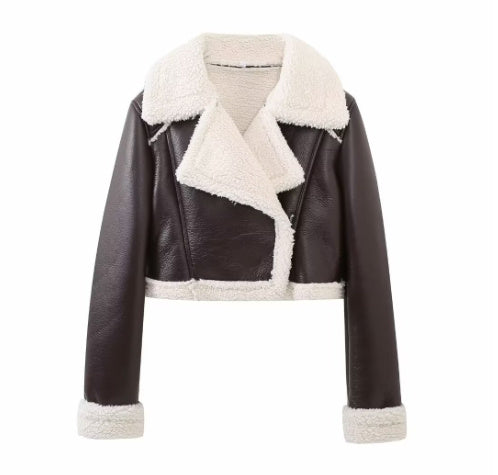 Geïntegreerde Imitatie Bont Korte PU-leren Biker Jas