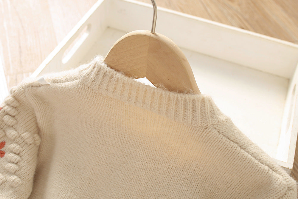 Gebreide vest met geborduurde bloemen voor meisjes