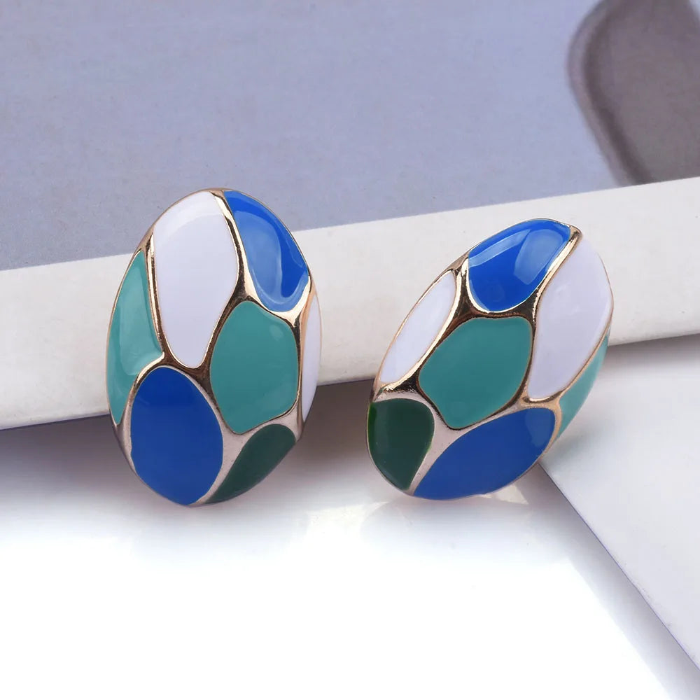 Hoogwaardige emaille ovale metalen oorbellen met druppelolie