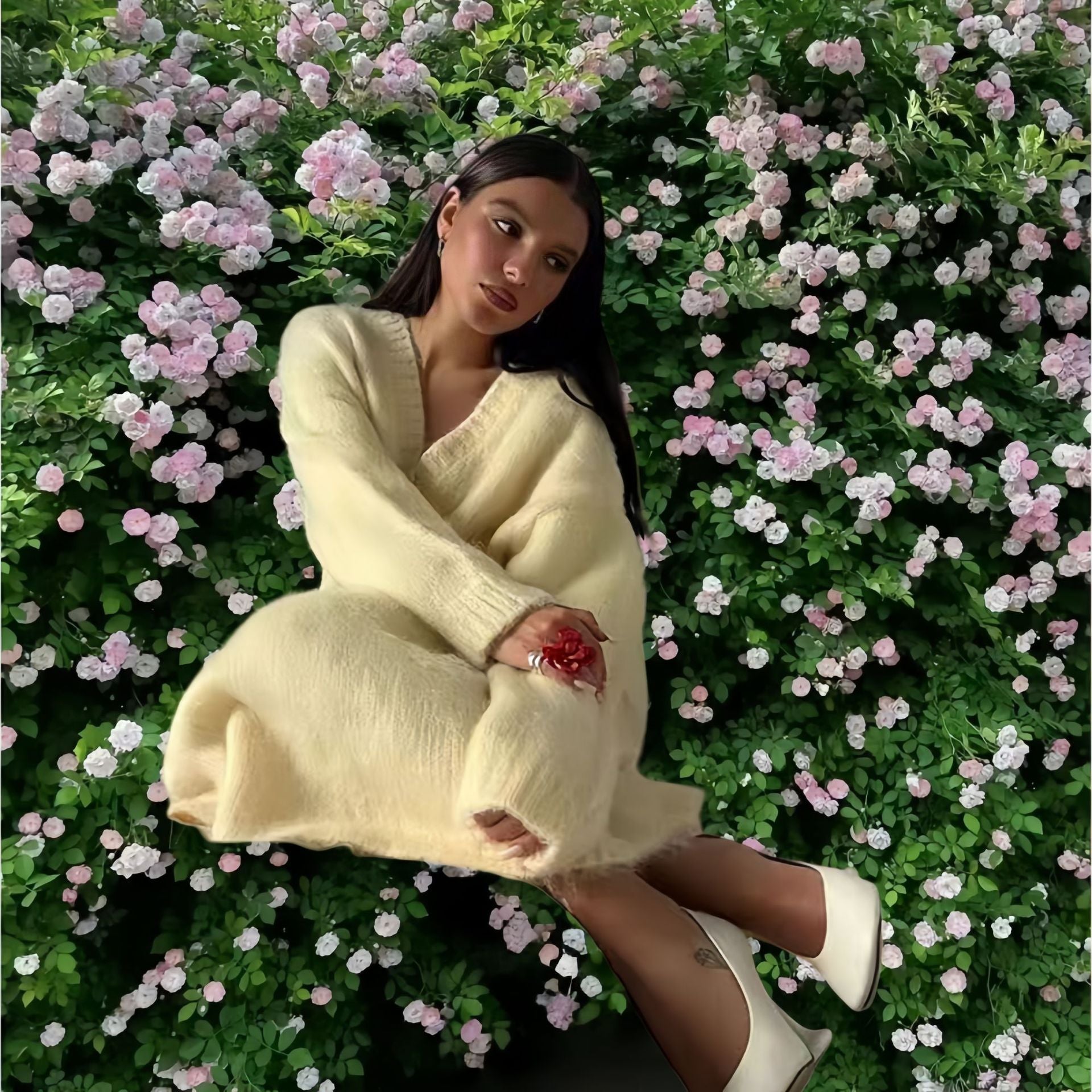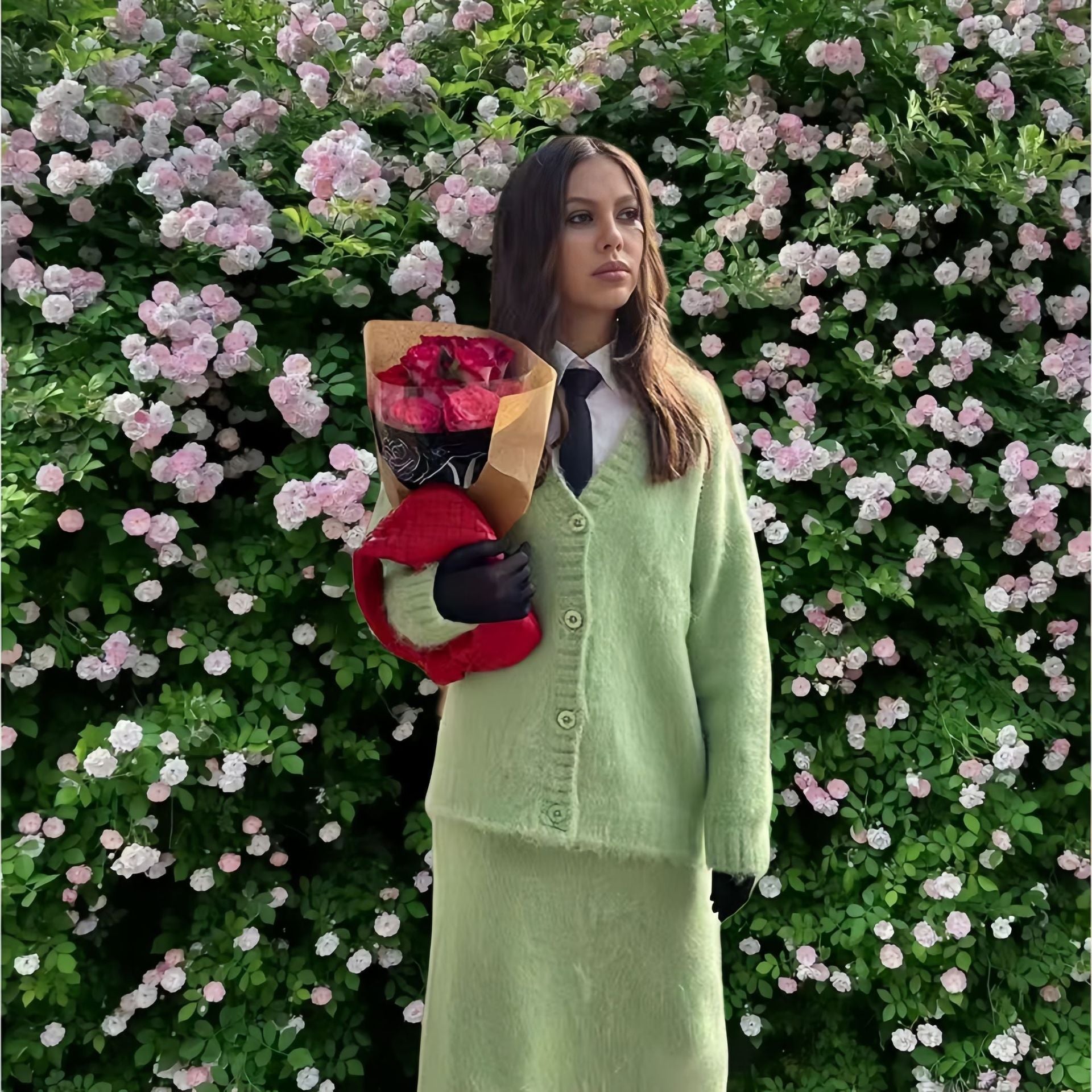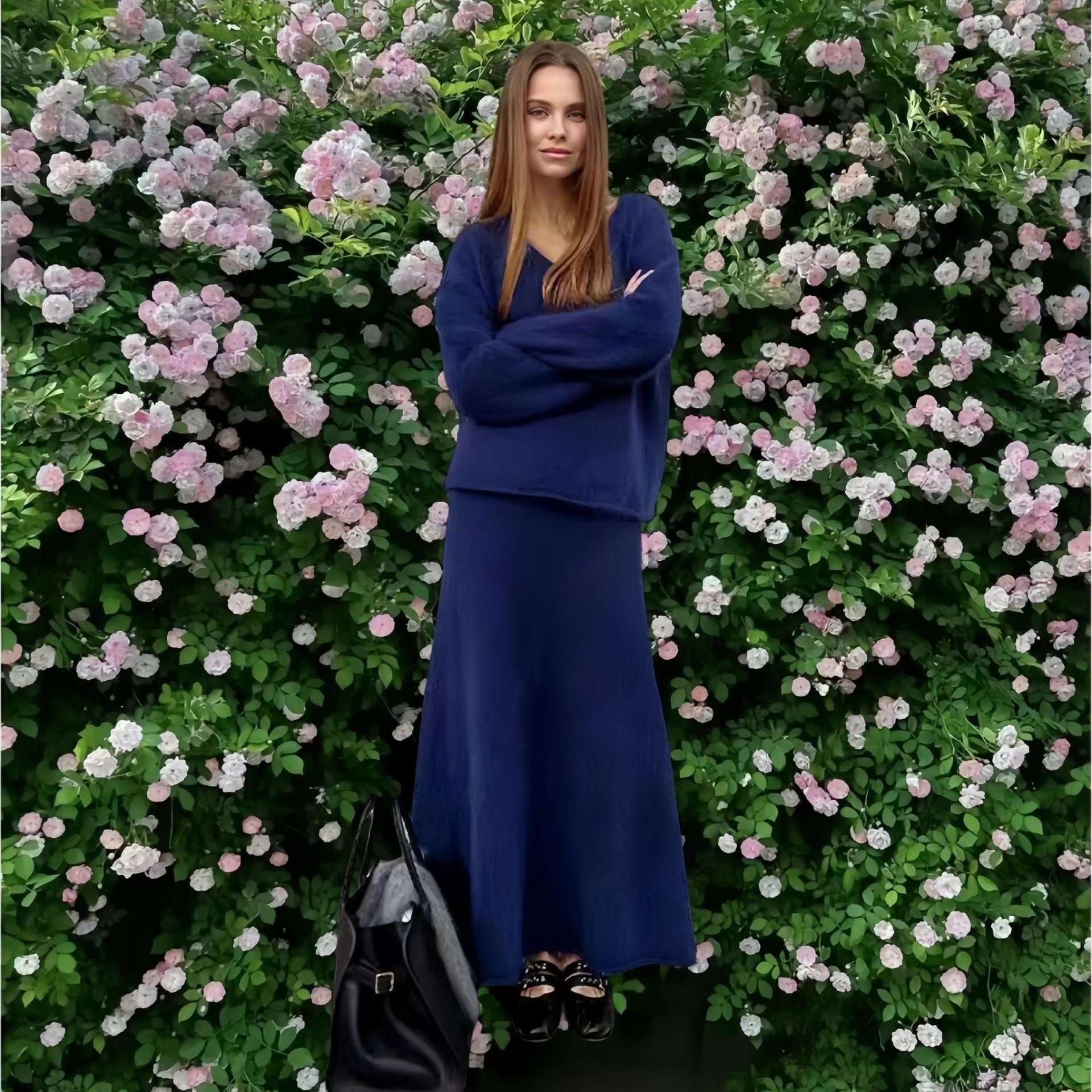 Eelegante gebreide V-hals trui of vest plus rok set