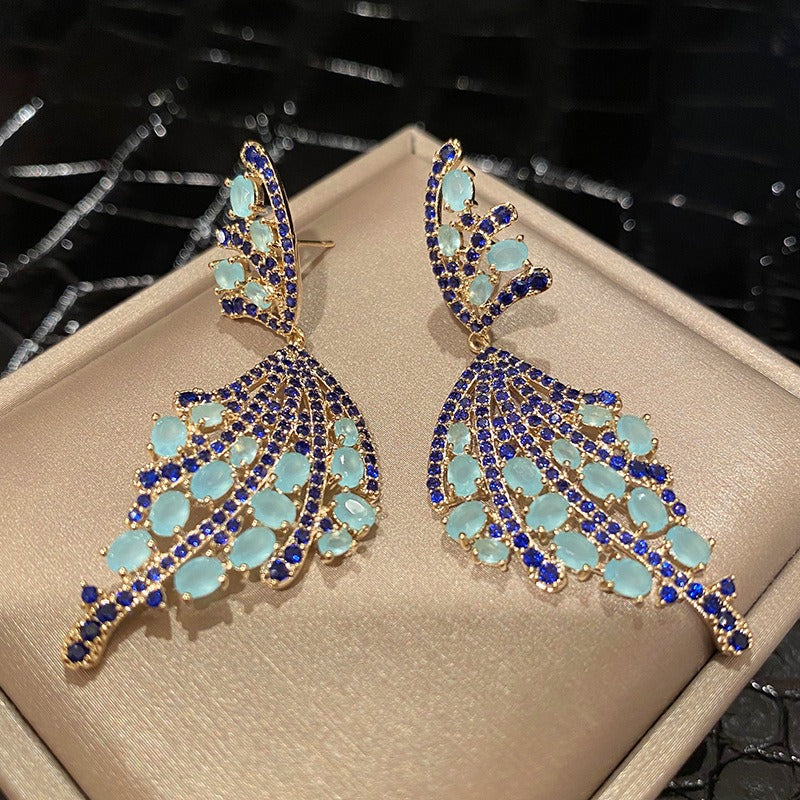 Temperament retro high-end blauwe/groene vlinder oorbellen