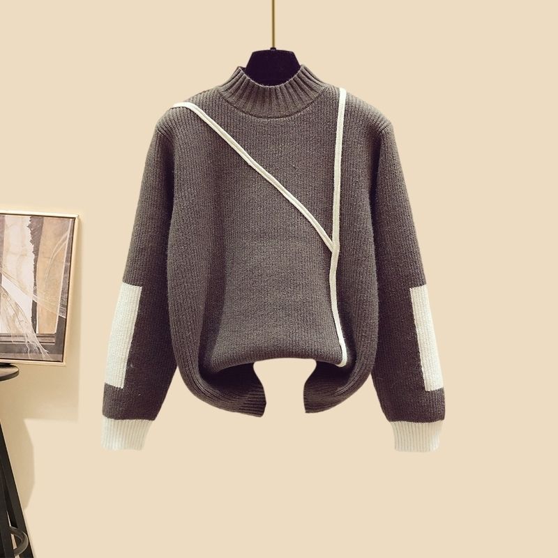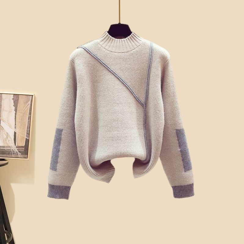 Tweedelige set 2: kaki trui, abrikooskleurig zonder fleece, katoenen broek,