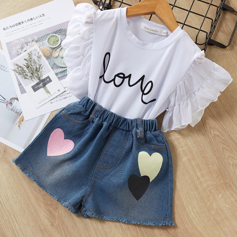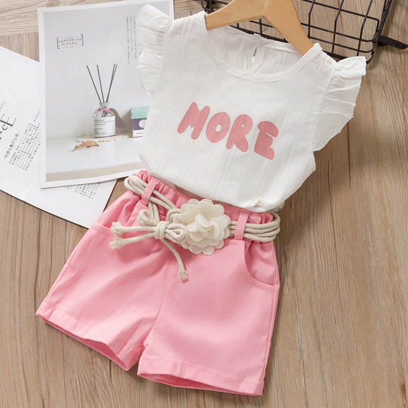 Meisjespakje top met ruches en korte wijde broek