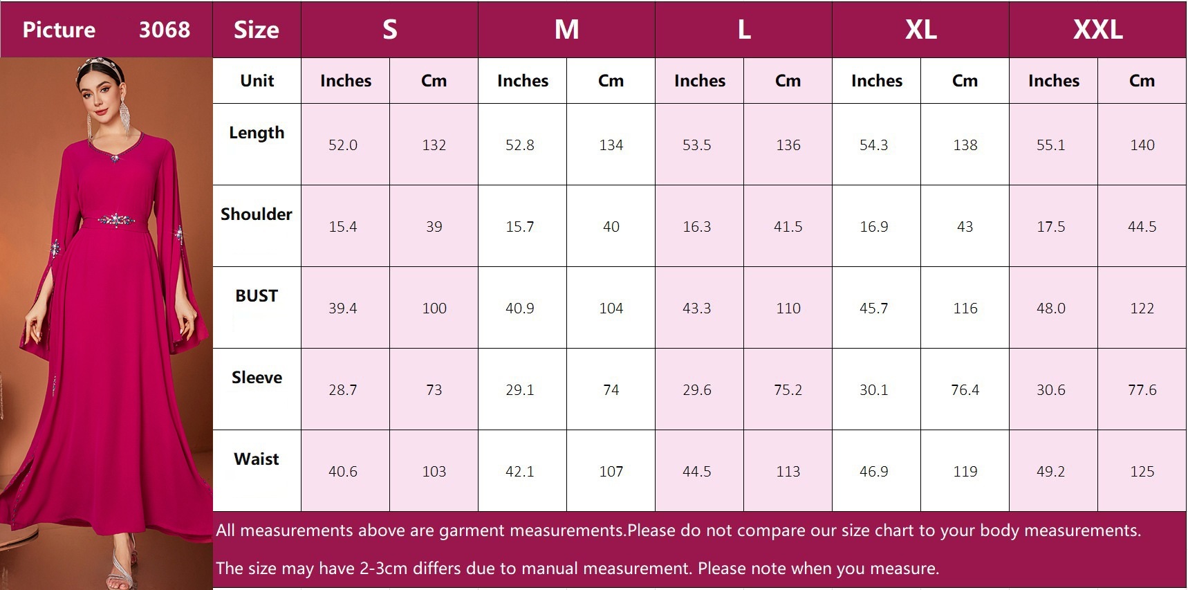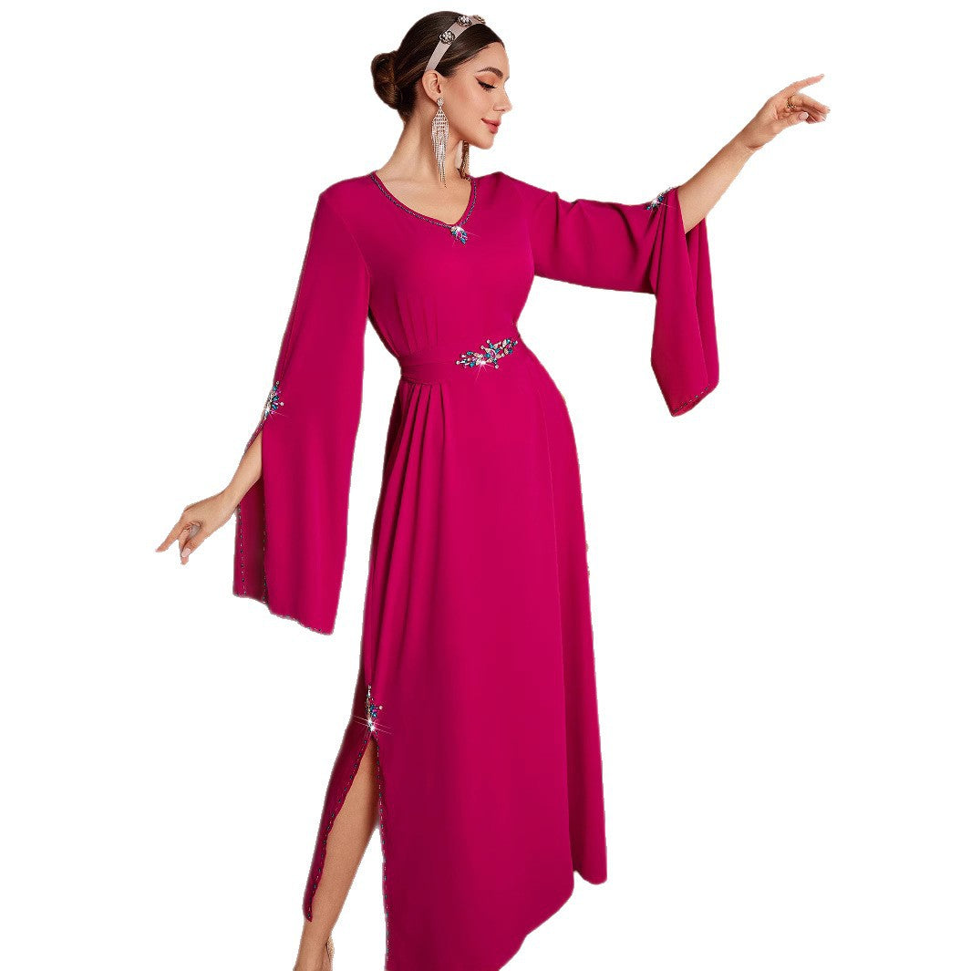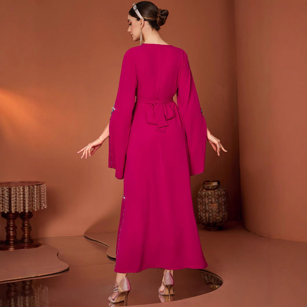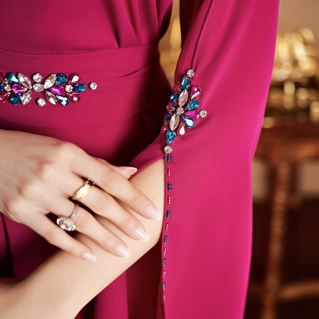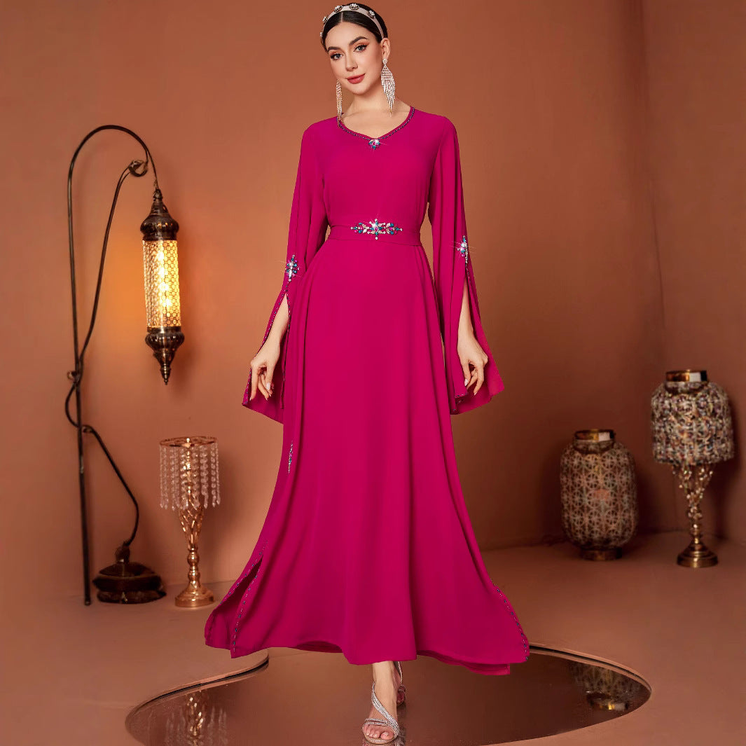 V-hals Turkse jurk met handgestikte diamantversieringen