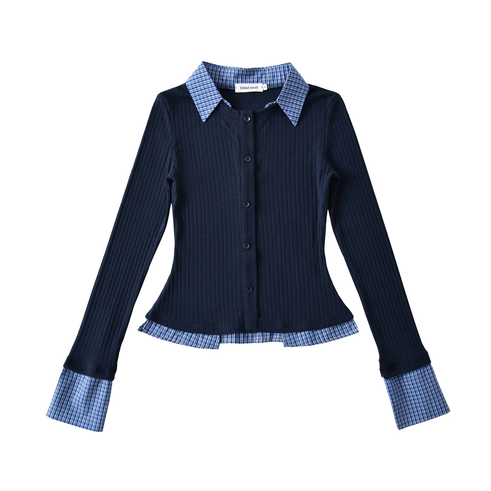 2-in-1 look top met kraag lange mouwen en nauwsluitende pasvorm