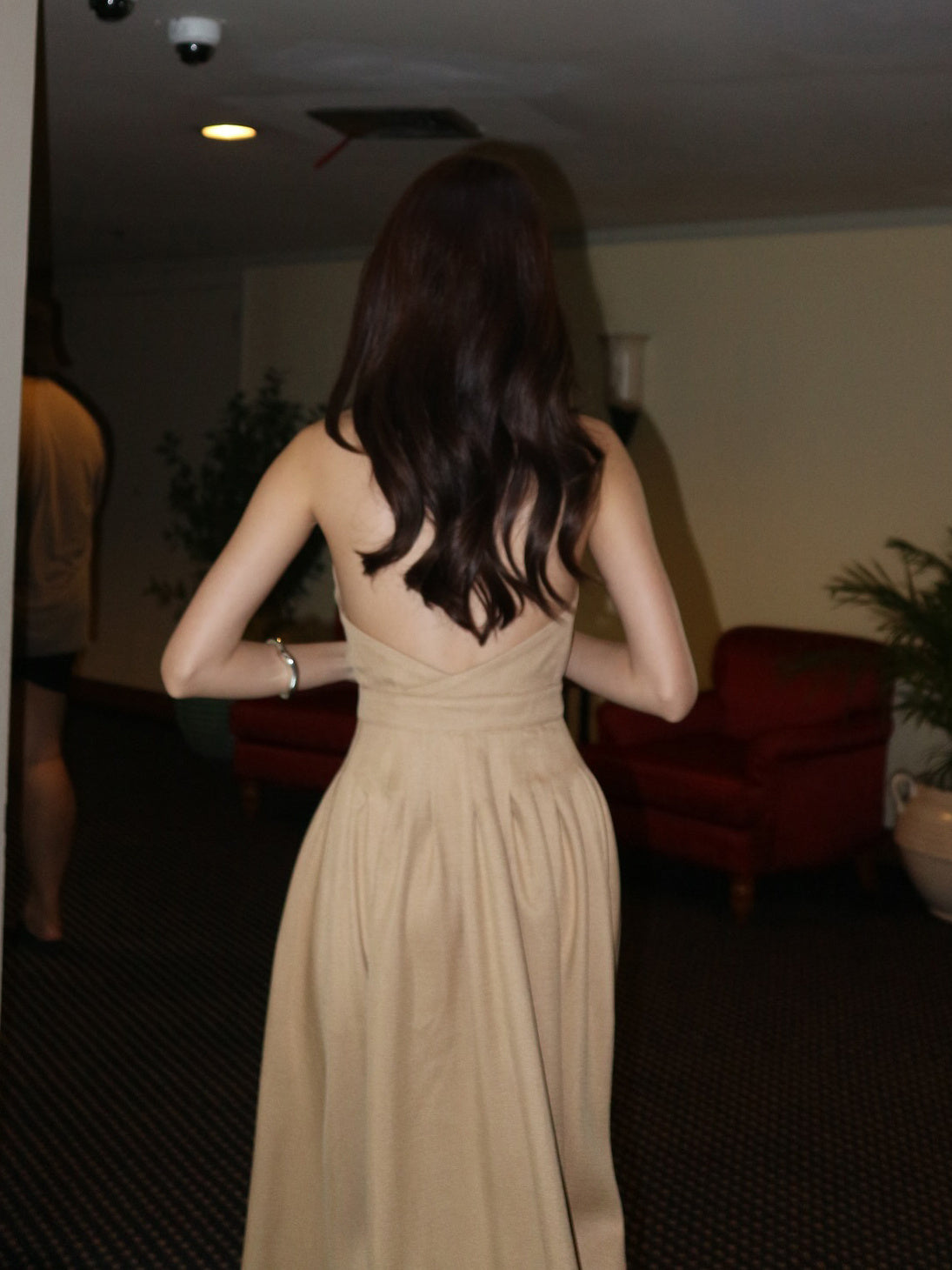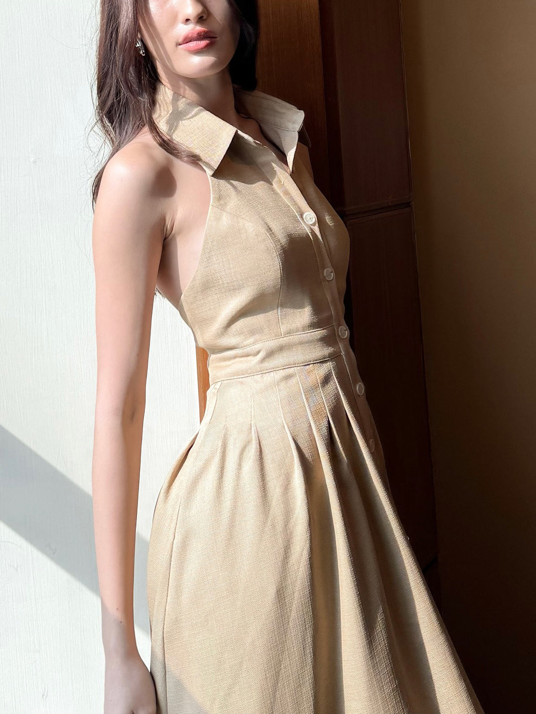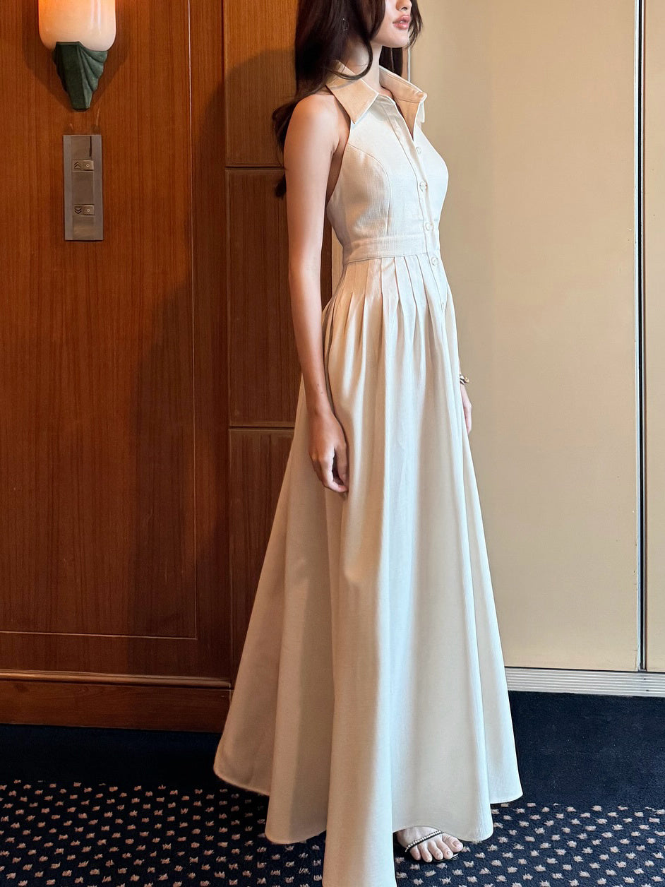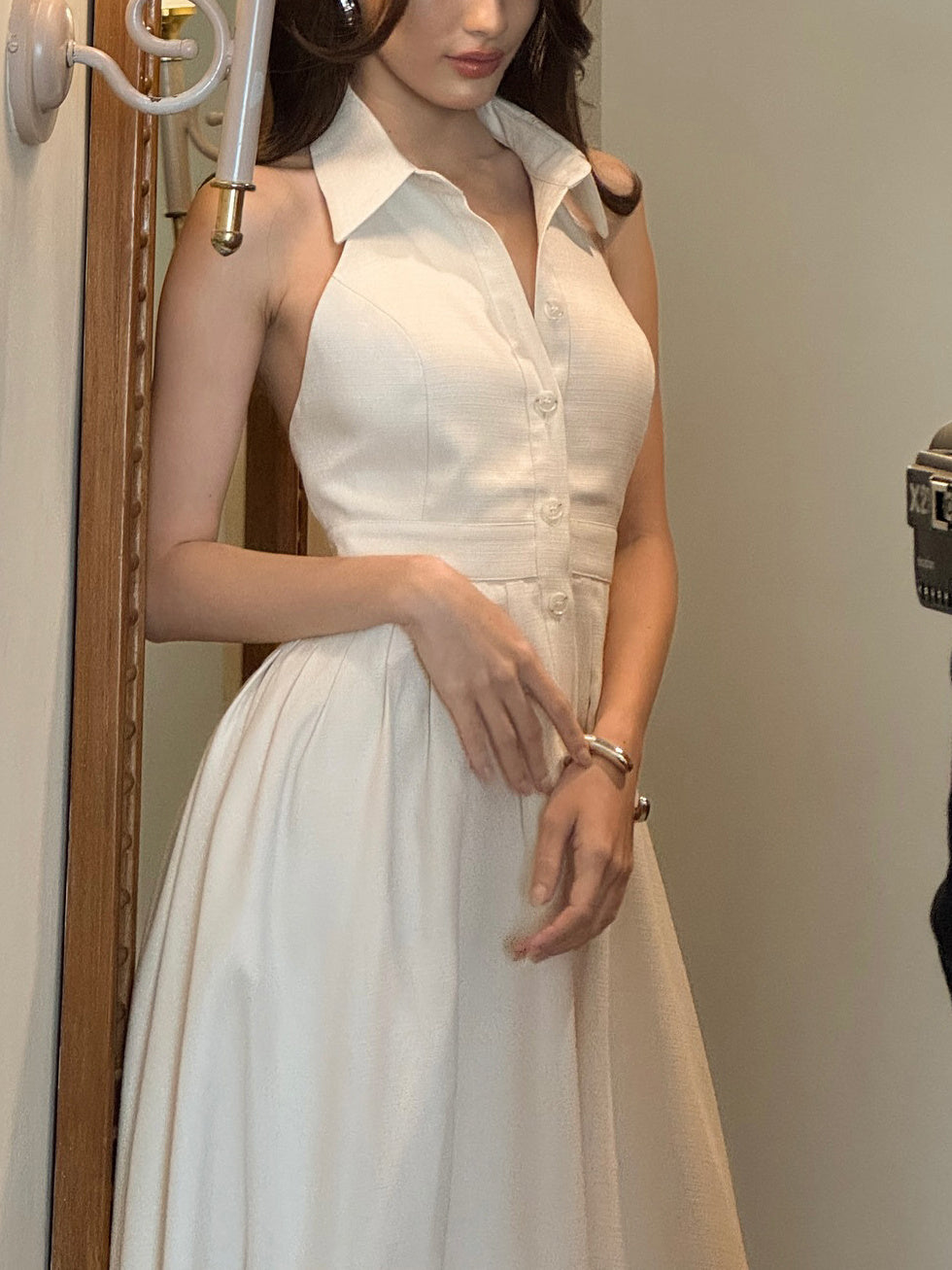 Enkelrijs- en rugloze effen overhemdjurk met één rij knopen