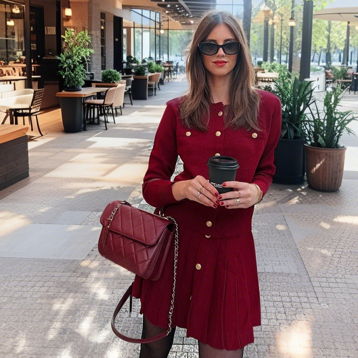 Kleur: geplooide A-lijn rok - wijnrood