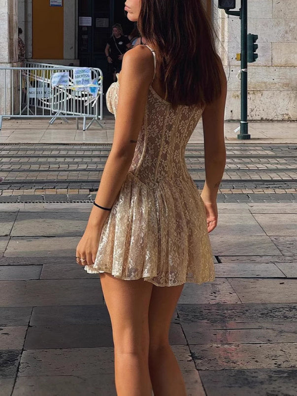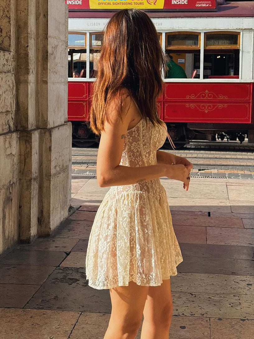 Kanten mini-jurk met spaghettibandjes