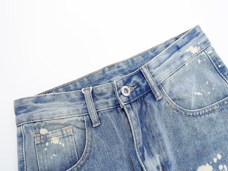 Heren casual trendy jeans met scheuren en verfspatten