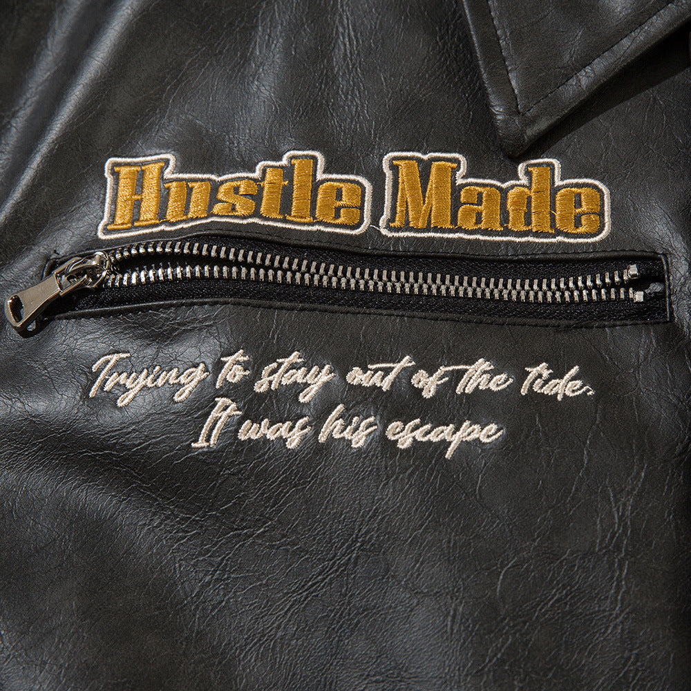 European And American Losse PU-leren unisex jas met geborduurde opdruk