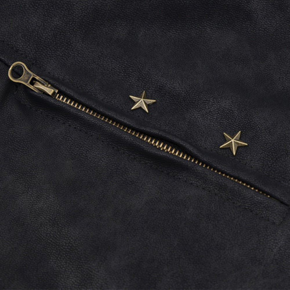 Losse Amerikaanse street winddichte Unisex PU-leren jas met rits/sterren versieringen
