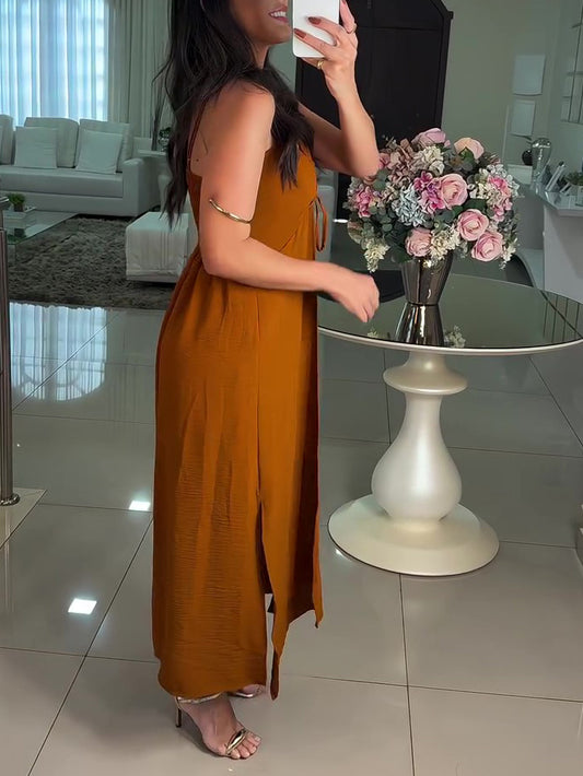 Bruine mouwloze top met hoge taille en wijde pijpen set