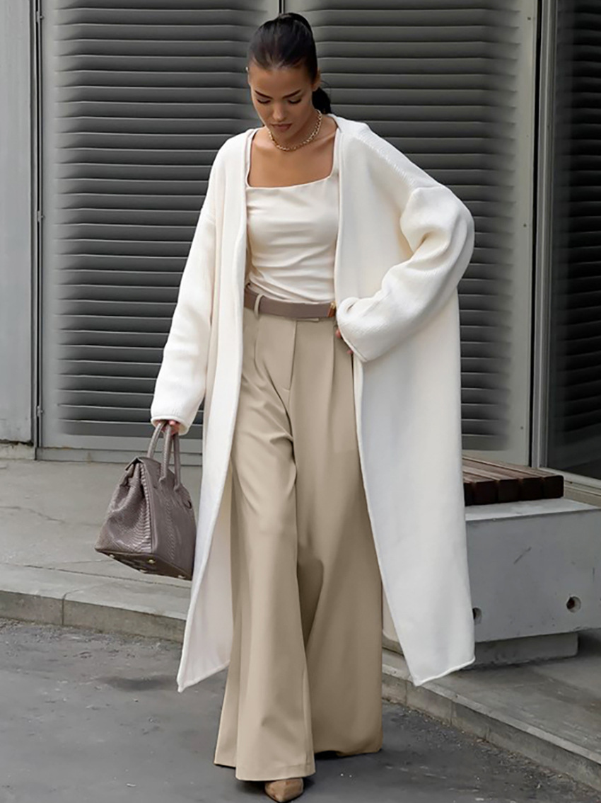 Europese verfijnde veelzijdige casual broek met hoge taille en wijde pijpen