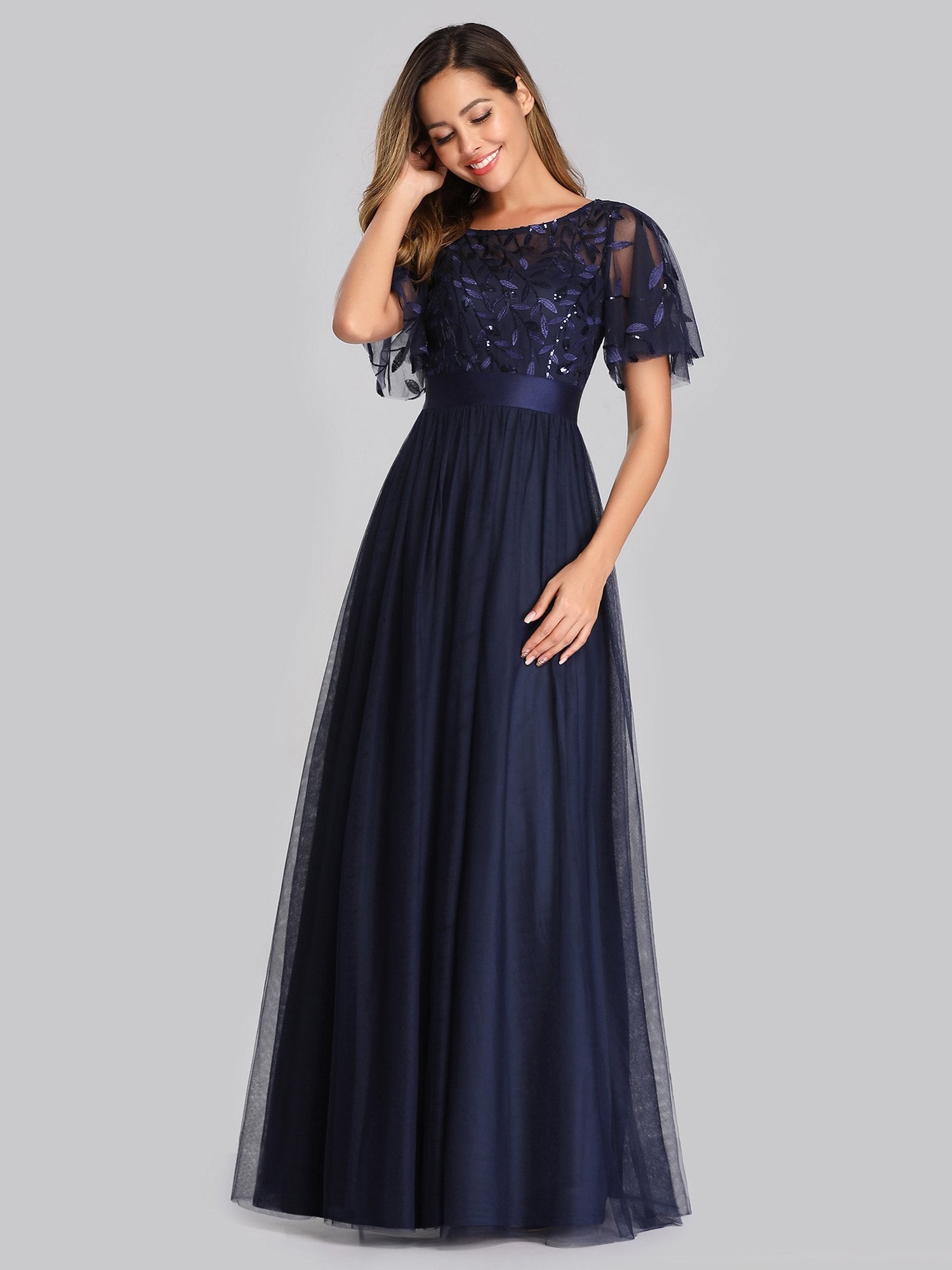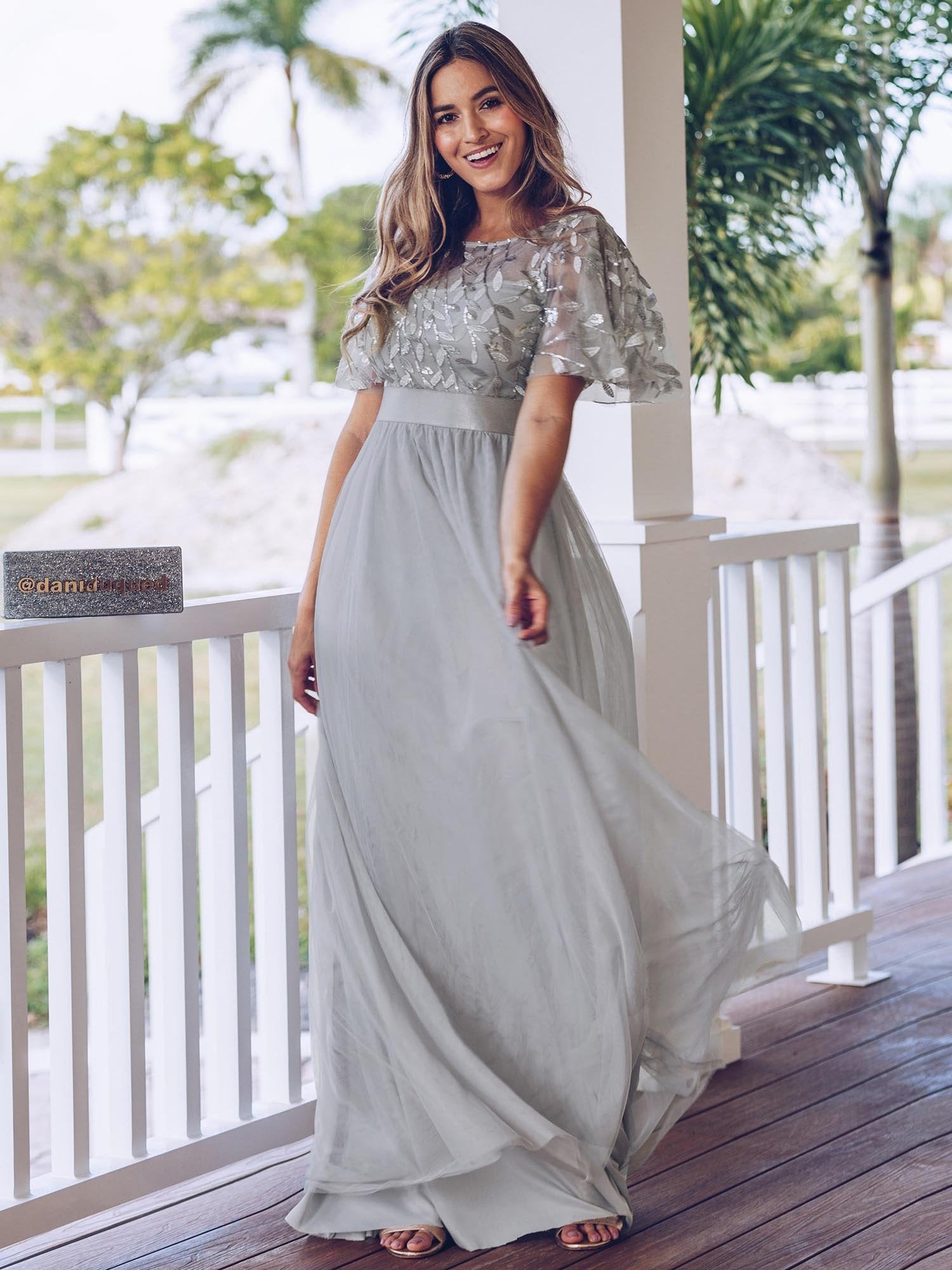 Bruidsmeisjesjurk met pailletten mesh en kant