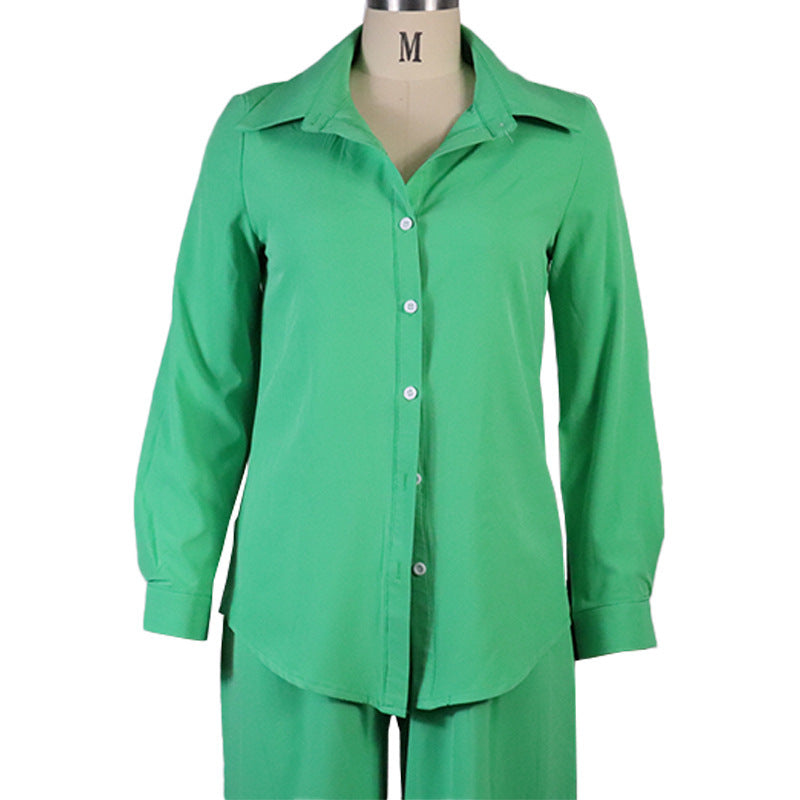 Dames effen overhemd en broekset